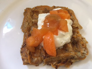 I got a Spiralizer for my birthday and bought myself a recipe book called Inspiralized to go with it. A spiralizer lets you turn fruit and vegetables into spaghetti-like strands which can be used in a whole host of different ways. I liked the sound of this recipe for sweet potato waffles though I wasn't sure how well it would turn out, but I can say that the recipe was a success!