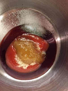 If you don’t have pomegranate syrup or molasses – though I’m pretty sure I bought it from Sainsburys rather than a specialist shop – the recipe does give instructions for how to make your own. But I skipped that stage and mixed the pomegranate syrup with the ketchup, honey, garlic and sugar – I left out the onion as such but used onion powder instead for a smoother sauce.