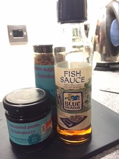 I followed Felicity Cloake's recipe in the Guardian for the perfect Pad Thai though I wasn't as fussy about the type of noodles and used straight-to-wok ones. I found fish paste, tamarind paste and pam sugar in Sainsburys though I had to do without the dried shrimp; I didn't think it mattered as I was using prawns in the Pad Thai. I decided to leave out the Chinese chives as well as I had no idea what they were or where to get them (Chinatown, I imagine) but what was really annoying was that the shop I went to was all out of beansprouts.  I didn't want to put this meal off and make it another time as I had already done that twice so instead used some alfafa sprouts I had in the fridge and added some shredded carrot for a bit of crunch. I also left out the tofu as I don't like it. Other than all those things I followed the recipe!