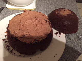 I thought that even if it was quite a moist cake it would be a lot to eat without any filling so I split the cake through the middle and filled with some chocolate buttercream.