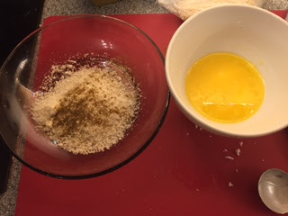 First butterfly a chicken breast to open it out flat and cut a thick slice of cheese - one per chicken breast. The recipe said to use Monterey Jack cheese but I couldn't find that in the supermarket. I think this would be nice with any kind of cheese but the internet tells me Monterey Jack is a mild white cheese and that Cheddar is a close cousin.